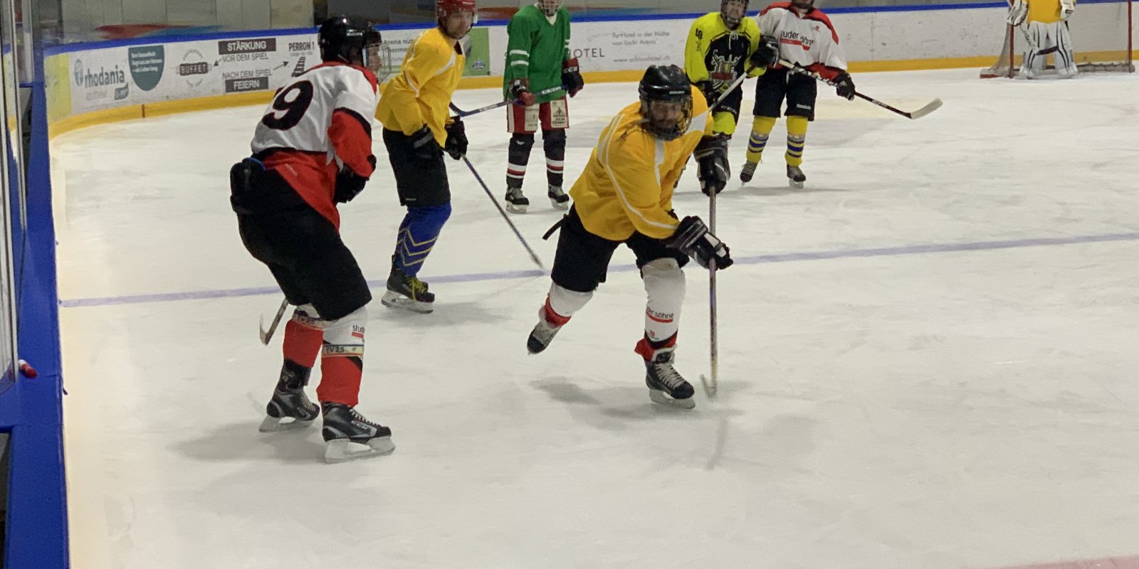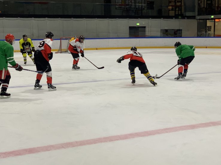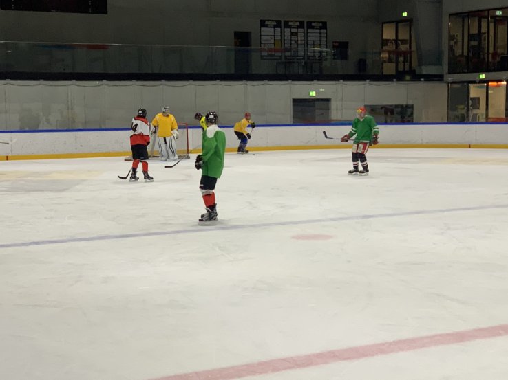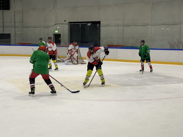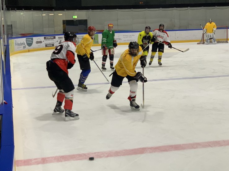 Letzte Woche trainierten die Knights zusammen mit den Senioren des FC Termen/Ried-Brig. Zwei durcheinandergewürfelte Mannschaften spielten während 90 Minuten ein fröhliches Eishockeyspiel mit einem 3:3 Endresultat. Alle Spieler hatten grossen Spass am Spiel und nach der Anstregung auf dem Eisfeld gab es in der Kabine ein wohlverdientes Bier...